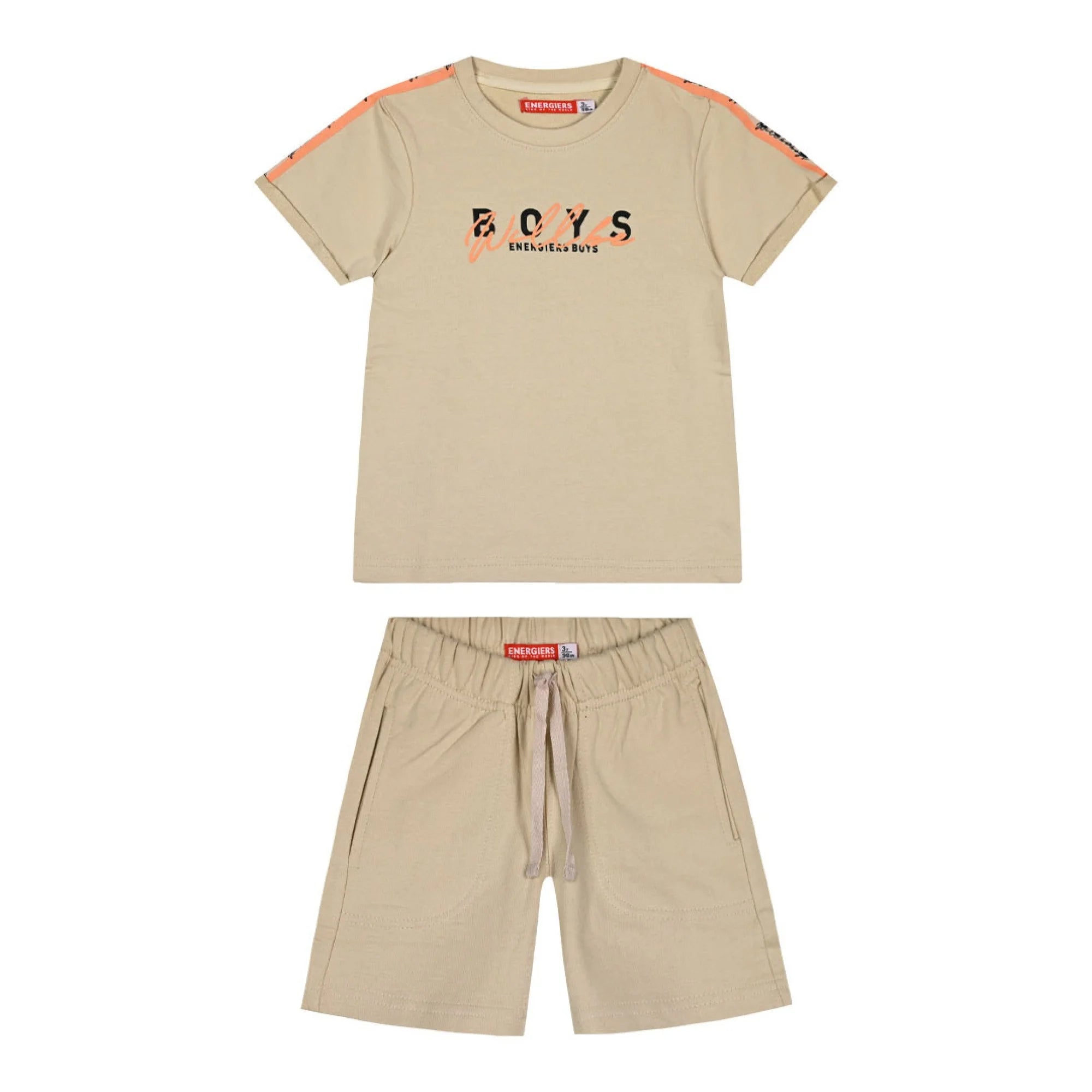 Energiers Παιδικό Σετ - Μπλουζάκι και Βερμούδα σε Μπεζ Απόχρωση με Τυπώματα