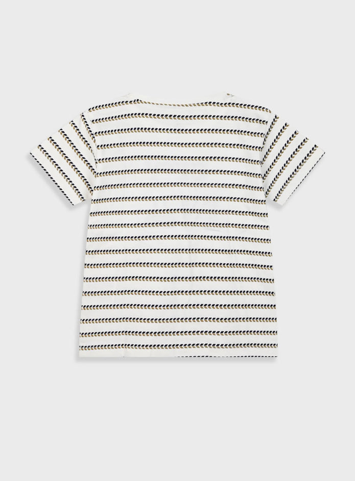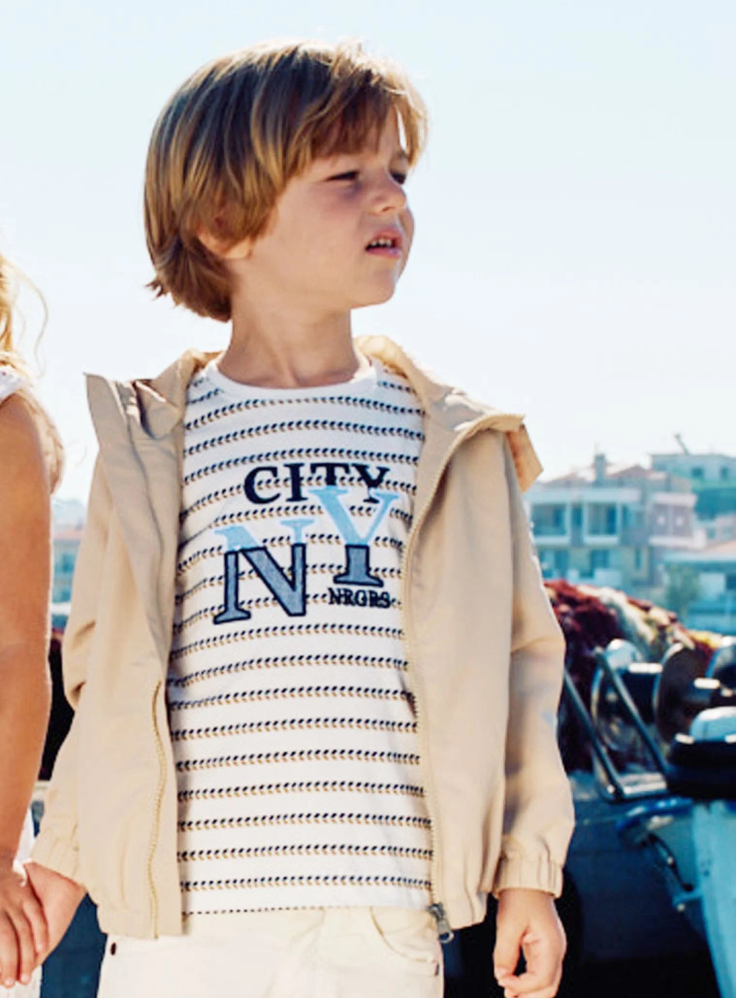Δώσε στο μικρό σου στυλ και άνεση με αυτή την ριγέ παιδική μπλούζα Energiers! Σε εκρού βάση με λεπτές μπλε ρίγες και εντυπωσιακό κεντητό σχέδιο "CITY NY", αποτελεί ιδανική επιλογή για καθημερινές εμφανίσεις με urban αέρα. Κατασκευασμένη από μαλακό βαμβακερό ύφασμα, προσφέρει απόλυτη άνεση και ευκολία στην κίνηση. Ταιριάζει τέλεια με τζιν, βερμούδες ή παντελόνι chino.